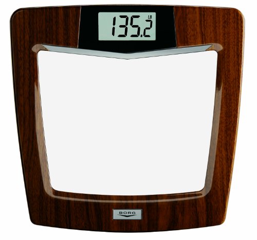 Sophiticated. beautiful. borg. based on heritage of superior design the borg digital scale is designed for discriminating owners whose life is expressed in everything they do-and everything they own. engineered with the highest preceisioni standards, the borg (tm) digital scale combines simplicity with sophistication. an easy to read 1 1/2 inch lcd display shows a capacity weight up to 380 pounds in 0.2 pound increments. includes a glass platform sorrounded by a polished mahogany border. powered by a reliable long-lasting lithium battery (included).