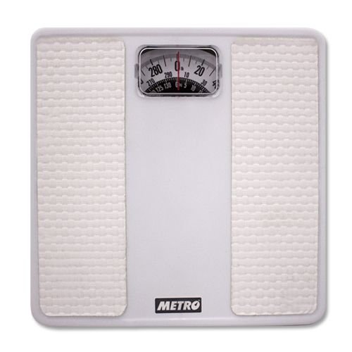 Eating right and exercise only go so far. To really realize your weight loss goals, you've got to step on the scale! Metro Scales offer total accuracy in a compact package. This Metro Analog Scale is a product of four generations of master scale makers. Metro's pioneering designs can be found in homes across the world. This low-profile bathroom scale features a large, easy-to-read analog dial in a classic white metal chassis. Each scale features stylish footpads that resemble woven fibers. The footpads offer a slip-free surface to stand upon for greater stability and comfort. Plus, the highly-accurate scale can measure weights up to 300lbs. Keep tabs on your progress - just step onto the Metro Analog Scale!